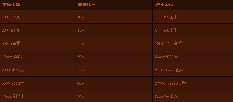 例如:当日充值总金额为100元,获得充值赠送100金币,若再次充值100元,累积充值达到200元,则将获得本次充值赠送的150金币以及前100元的赠送差额50金币。
