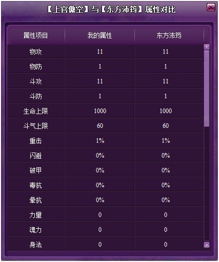 6、 修正了查看玩家界面,现在查看其它玩家可以通过“对比属性”按钮查看双方属性差别。