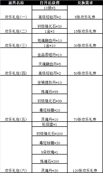 欢乐礼券可在兑换界面兑换丰厚奖励,详细兑换内容参见【活动四、欢乐礼券换换换!】