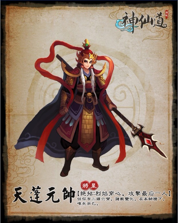 2)天蓬元帅:将星,160万声望,绝技为烈焰穿心,可攻击最后1个人,附带眩晕