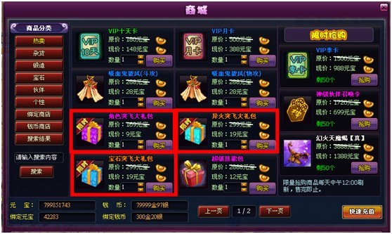 角色突飞大礼包:限时抢购价格9元宝