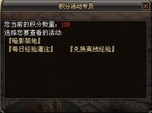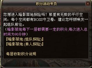 暗影禁地入口在春之城-积分活动专员处(64,40),点击可以进入, 同时可以查看自己的积分数量。