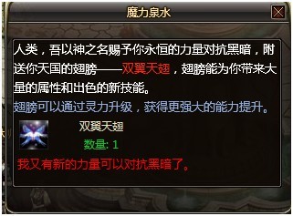 完成该任务即可免费领取到天国的神器——双翼天翅。