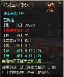 2、此新手装备等级要求仅10级,能力等同于40级普通装备,绝对是所有传奇新手玩家的首选。