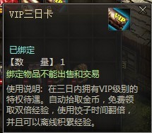 首次充值不论金额多少奖励“VIP三日卡”以及全套新手极品装备